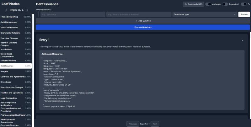 Developed an AI-powered pipeline for a +$1B AUM Quant Hedge Fund to extract insightful topic from noisy data. The pipeline automates the processing and classification of large financial text datasets, reducing manual workload by 90% and cutting costs by 70% per dataset. Used semantic embeddings, clustering models (HDBSCAN, K-Means), and multi-AI consensus scoring to extract key insights for trading strategies. Built an interactive web platform for exploring data, enhancing research speed and accuracy.